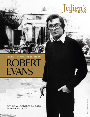 writer Robert Towne with the note written on the front page dated 12/23/77, “For my Favorite Producer, Hope to give you many, many more and two in the New Year” (estimate: $8,000 - $10,000); Evans' brass “name” that hung on his Paramount Studios' office door (estimate: $300-$500); a group of 100 never before seen black and white photographic contact sheets of behind-the-scenes images on the set of Chinatown depicting the cast including Jack Nicholson, Faye Dunaway, John Huston and director Roman Polanski who also appeared in the film (estimate: $3,000-$5,000); Evans' script from 1974's The Godfather II marked “Second Draft" (estimate: $1,000-$2,000); a key to New York City presented to Evans by Mayor Abraham Beame on October 19, 1975 (estimate: $1,000-$2,000); Evan's three large Rolodexes from the 1980s-1990s containing dozens of the producer's Hollywood friends and business contacts including: Wes Anderson, Army Archerd, Warren Beatty, Candice Bergen, Jacqueline Bissett, Peter Bogdanovich, Francis Ford Coppola, Tony Danza, Barry Diller, Faye Dunaway Mia Farrow, Carrie Fisher, Heidi Fleiss, Andy Garcia, Hugh Hefner, Dennis Hopper, Angelica Huston, Louis Malle, Shirley MacLaine, Liza Minnelli, Helmut Newton, Jack Nicholson, Roman Polanski, Mario Puzo, Rob Reiner, Arnold Schwarzenegger, Liz Smith, Aaron Spelling and Elizabeth Taylor to name just a few (estimate: $400-$600); Evan's 1980 U.S. passport containing multiple entry stamps and visas to Malta, Antigua, Barbados, France, Japan, Tahiti, Mexico, and others (estimate: $2,000-$4,000); Evans' personal pair of Oliver Peoples brand "Robert Evans" black framed and gradient blue lens prescription eyeglasses with the ends chewed by Evans, as was his habit (estimate: $2,000-$3,000); plus, his scripts of Marathon Man, Love Story, photographs from the film The Sun Also Rises, archival and professional portrait photos, film industry membership cards and more.